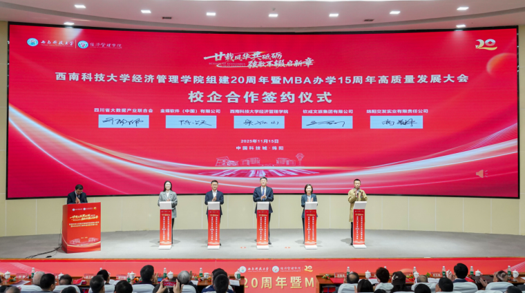 11月15日,西南科技大学经济管理学院组建二十周年暨MBA办学十五周年高质量发展大会在该校东五学术报告厅举行。